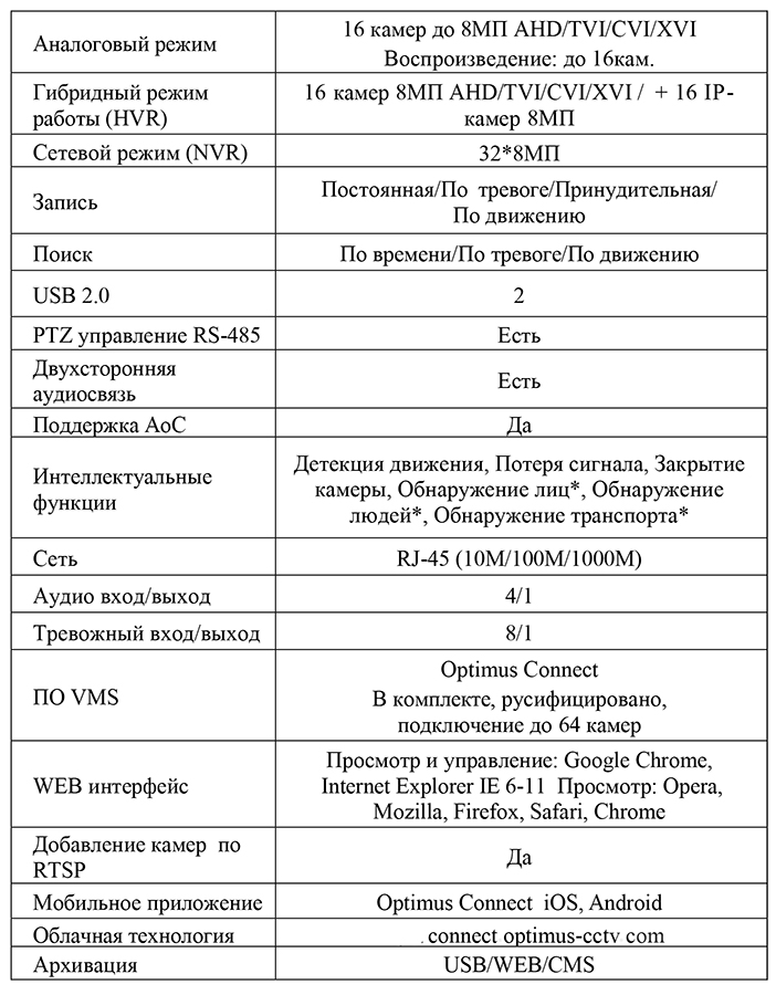 ПО VMS: Optimus Connect. В комплекте, русифицировано, подключение до 64 камер