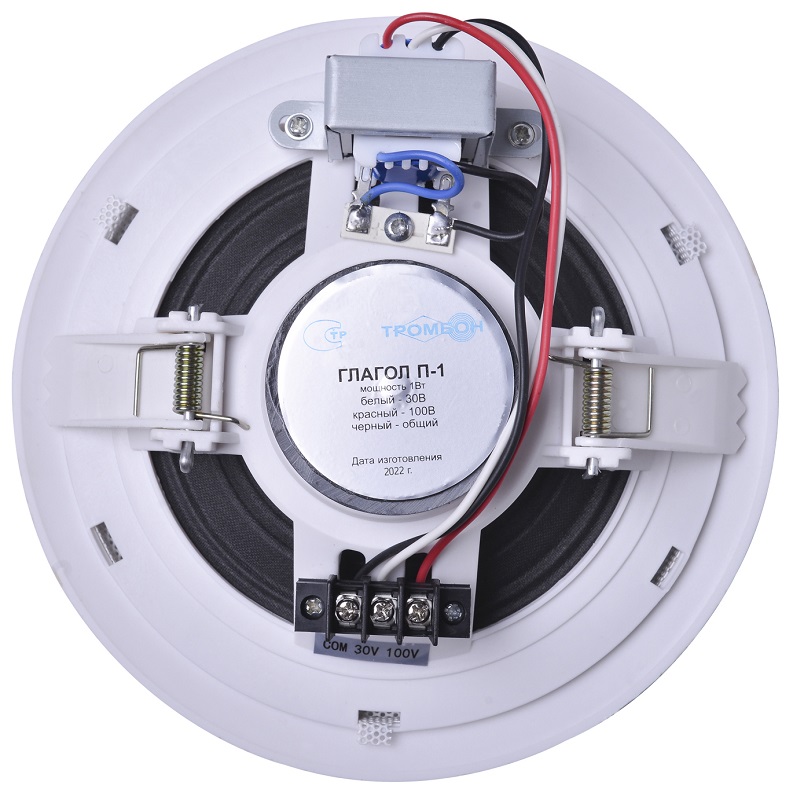 Глагол П-1 громкоговоритель потолочный 1 Вт; охранно-пожарный; речевой; встраиваемый; 1 Вт; напряжение 30/100В; 90 дБ; 100Гц-15кГц; (монтажное отверстие диаметр 163 мм); пластик; 0°C ~ +40°C; IP40; D186х45 мм; 560 г.