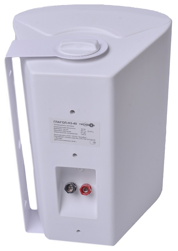 Глагол Н3-40 оповещатель настенный; речевой; номинальное напряжение 100В; 99дБ; 60Гц-20кГц; пластик; IP40; 300х220х190 мм; 5 кг.