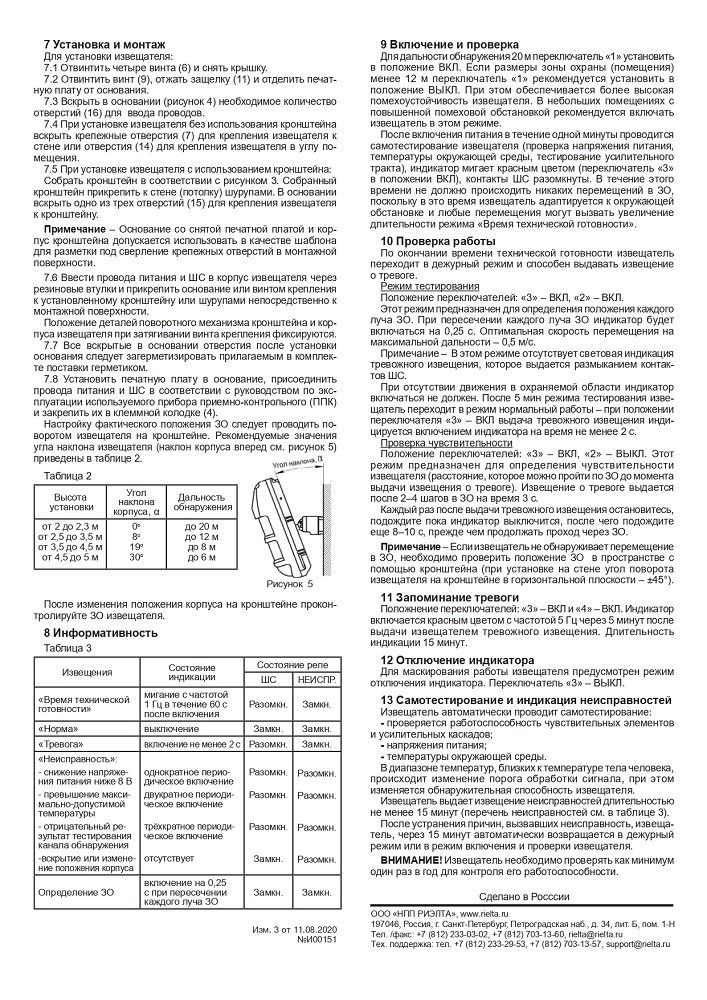 Три пироприемника в трех независимых каналах обнаружения обеспечивают высокую вероятностью обнаружения нарушителя и повышенную помехоустойчивость.