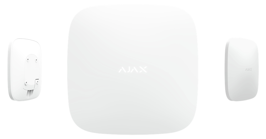 Ajax Hub Plus белый смарт-центр системы безопасности с Wi-Fi, Ethernet и поддержкой двух SIM-карт, контролирует работу всех датчиков Ajax и моментально оповещает о тревогах; 150 подключаемых устройств; до 50 камер/видеорегистраторов; 99 пользователей; моментальное переключение между 2G и 3G; блочное AES шифрование; 5 подключаемых ReX; 64 сценария; дальность связи до 2000 м; 868,7−869,2 МГц; 25 мВт; питание 110-240 В, АБ 2 Ач;−10°С +40°С; 163 × 163 × 36 мм; 350 г.