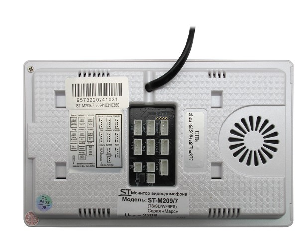ST-M209/7 (TS/SD/WF/IPS) БЕЛЫЙ монитор домофона Space Technology; CVBS/TVI/CVI/AHD(720Р/1080P); функция распознавания лиц; возможности подключения: до 2х вызывных панелей, до 2х видеокамер, до 6и мониторов; слот под SD карту; АС 100-240В (встроенный БП 12V1A); -10°С...+60°С; 30V/1A; пластик; 175,5х122,5х21,5 мм.
