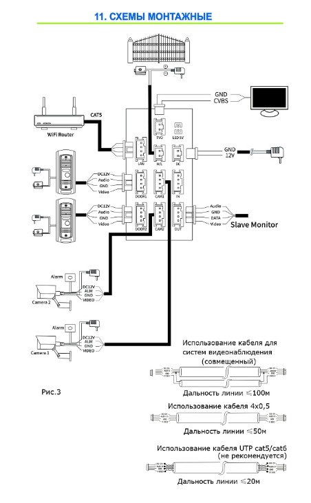 Возможности подключения: До 2х вызывных панелей, до 2х видеокамер, до 6и мониторов*