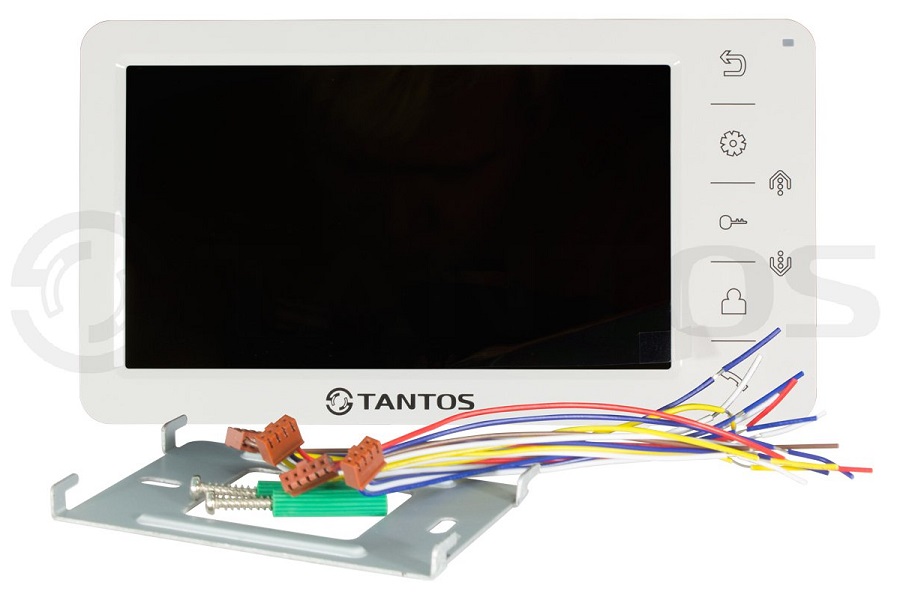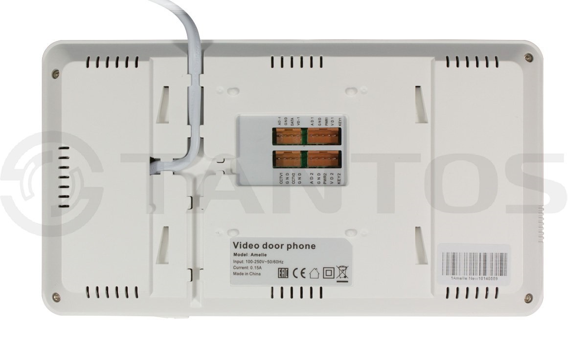 Amelie (White) видеодомофон Tantos; цв. TFT LCD 7"; PAL/NTSC; Hands-Free; сенсорные кнопки; 2 панели, 2 камеры, до 4-х шт. в параллель; индивидуальный/ многоквартирный режимы; режим <не беспокоить>; 220В; 50мА; цв. белый; 210х116х25 мм; 450 г.