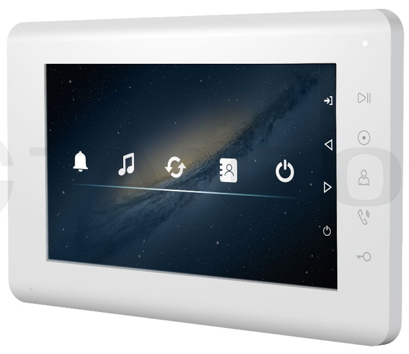 Mia HD (White) монитор видеодомофона; дисплей TFT, цветной, сенсорный, 7 дюймов, 800x480; AHD/TVI/CVI: 1080P / 720P или CVBS (PAL); сенсорные кнопки; 2 вызывных панели, 2 камеры, до 6 мониторов; от 0 до +40 град.С; 205х128х18мм.