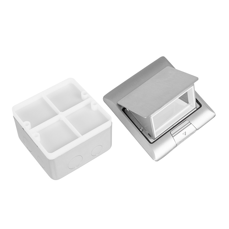 DR-PRO-013822 лючок напольный, 4 модуля, выдвижной, алюминий, в бетон, серебрянный Datarex; IP40; алюминиевый сплав; глубина монтажа 65-90 мм; 146х146х8/120х120х60 мм.