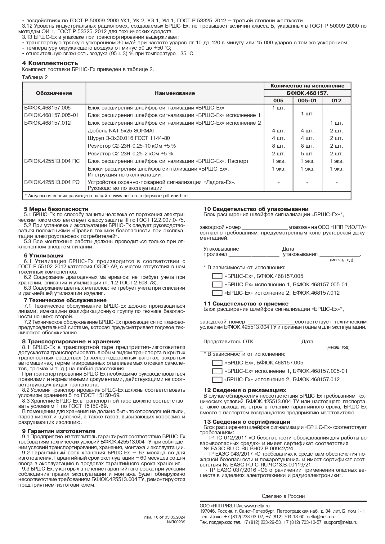 БРШС-Ex исп.1 блок расширения шлейфов сигнализации Риэлта; 0,3 А; максимальный ток потребления 2 А; Ex ia Ga IIC X; от -40 °С до +55 °С; IP20; 250х220х45 мм.