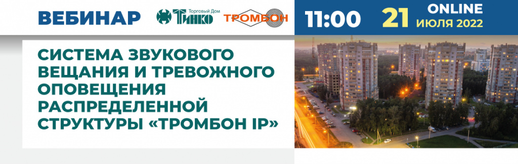 21 июля вебинар «Система звукового вещания и тревожного оповещения распределенной структуры Тромбон IP»