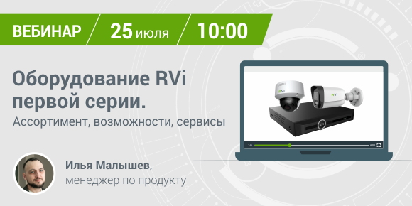 Компания RVi приглашает на вебинар «Оборудование RVi первой серии. Ассортимент, функционал, сервисы», который пройдёт 25 июля в 10:00 по МСК.