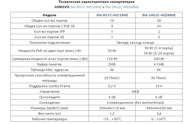 Коммутаторы OSNOVO SW-8G1C-M(120W) и SW-24G2C-M(200W) - это профессиональные коммутаторы для построения надежных и безопасных сетей.