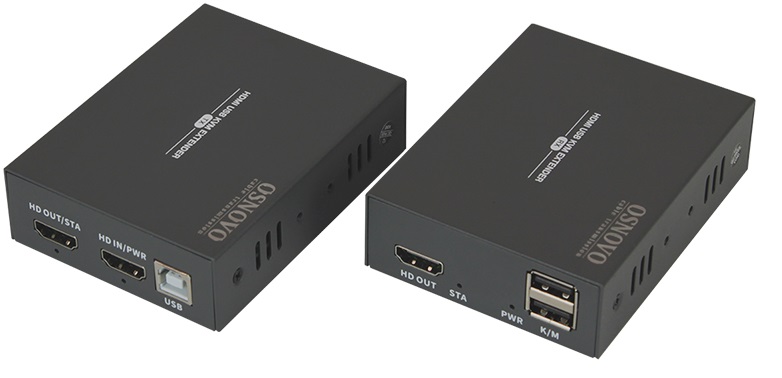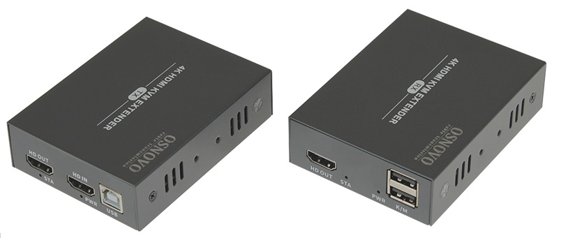Передатчик монтируется в непосредственной близости от источника сигнала, а приемник устанавливается на удаленном рабочем месте. К портам USB приемника подключаются клавиатура и мышь, к разъему HDMI–монитор.