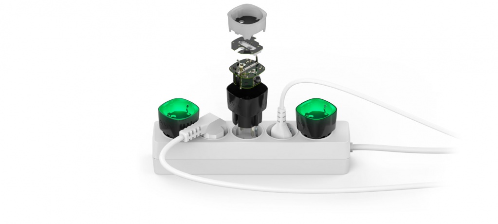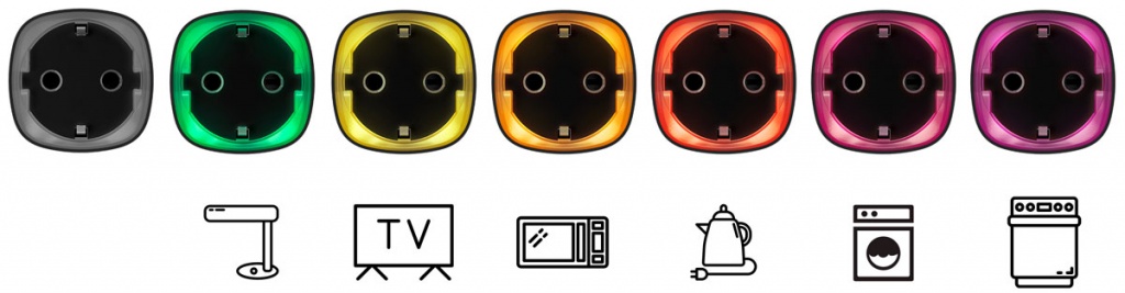 Socket информирует об уровне потребляемой мощности подключенными приборами светодиодной рамкой - меняя цвет подсветки в реальном времени. Предназначена для подключения любой бытовой техники.