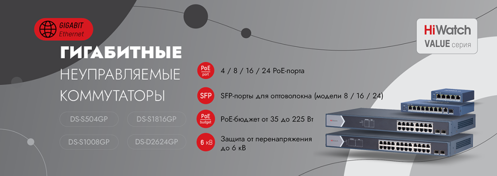 Гигабитные неуправляемые коммутаторы HiWatch Value-серии