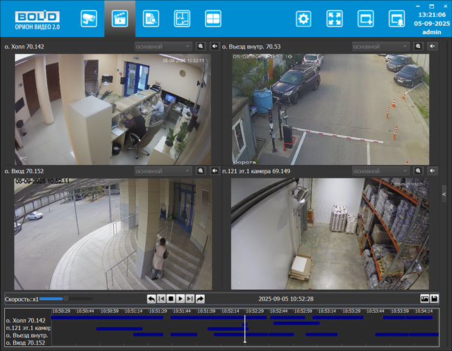 - Воспроизведение архива: Возможность воспроизводить видеозаписи как из хранилища сервера, так и из видеорегистраторов BOLID