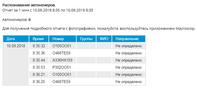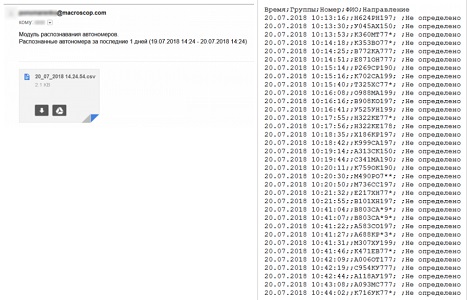 | пример отчёта модуля распознавания автономеров в виде таблицы | пример отчёта в виде *.csv файла |