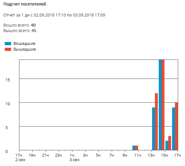 Отчеты о работе модулей подсчета посетителей также можно отображать в виде диаграммы.