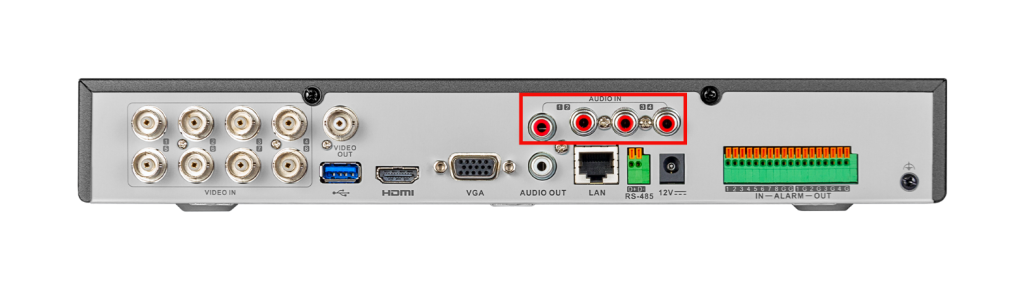 - Подключите микрофон к RCA разъему аудиовхода регистратора. Если аудиовходов несколько, то можно использовать каждый из них (необходимо использовать микрофон с отдельным питанием 12 В).