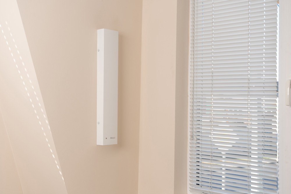 Частицы потока воздуха, создаваемого вентилятором, проходят через замкнутое пространство, ограниченное медной пластиной. В течение нескольких секунд они облучаются УФ-лампой. В результате происходит уничтожение бактерий и вирусов (в том числе и COVID-19).