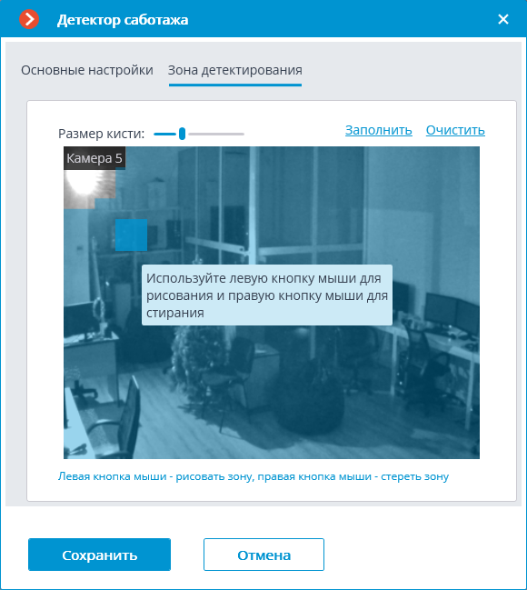 Детектор саботажа помогает оперативно реагировать на неработоспособность камер видеосистемы в случае их расфокусировки, отклонения от заданного положения, длительного засвета и перекрытия.