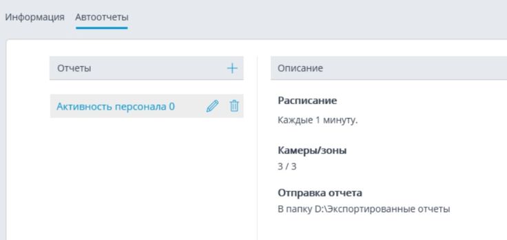 Также в рамках версии 3.2 появился новый автоотчет для модуля контроля активности персонала . Это автоматическая выгрузка данных активности персонала по зонам за указанное время. Данные можно сохранить в файл или отправить на электронную почту.