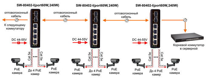 Данный коммутатор можно использовать для организации видеонаблюдения, включая мощные купольные PTZ камеры с инфракрасной подсветкой.