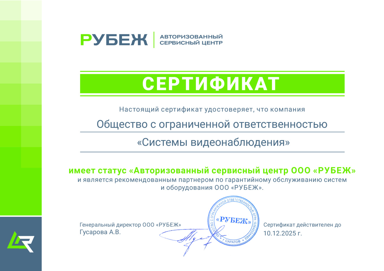 «Системы видеонаблюдения» является авторизованным сервисным центром компании «РУБЕЖ».