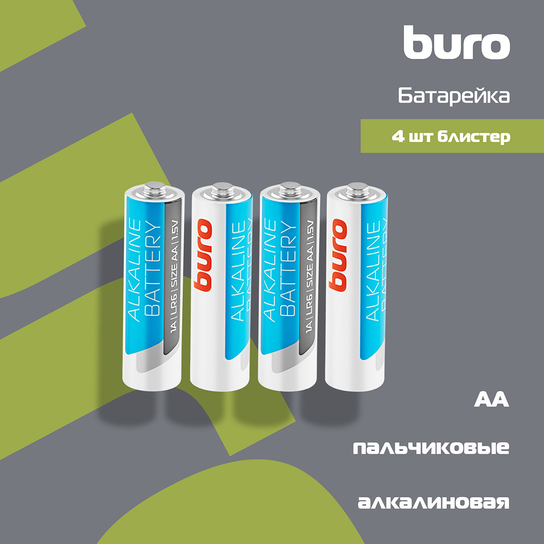 Батарея Buro Alkaline LR6 AA (4 шт/уп); тип батареи щелочная; напряжение 1.5 В.