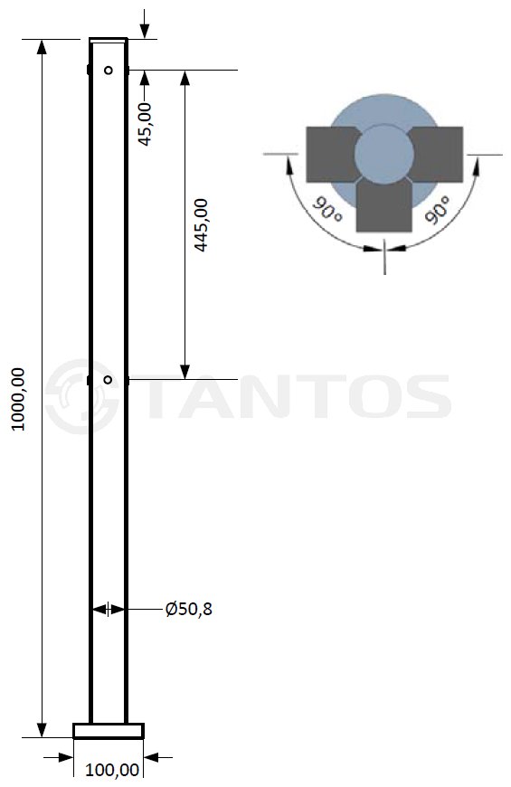 TSb-V стойка универсальная 3-х сторонняя Tantos; с 6-ю отверстиями для муфт TSb-M(MK); полированная нержавеющая сталь AISI 201; -10...+50°С; 50,8х1000 мм.