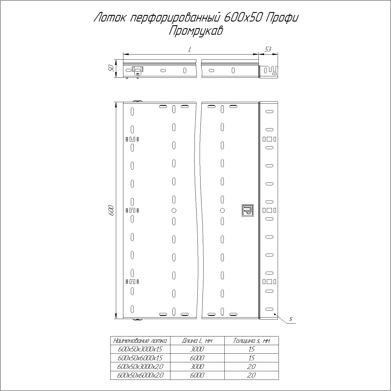 PR16.13488 лоток перфорированный Профи INOX (AISI 316) 600х50х6000 (2,0 мм) (12 м/уп) Промрукав; нержавеющая сталь; монтаж -100...400 °C; -150...600 °C; 11,075 кг/м.