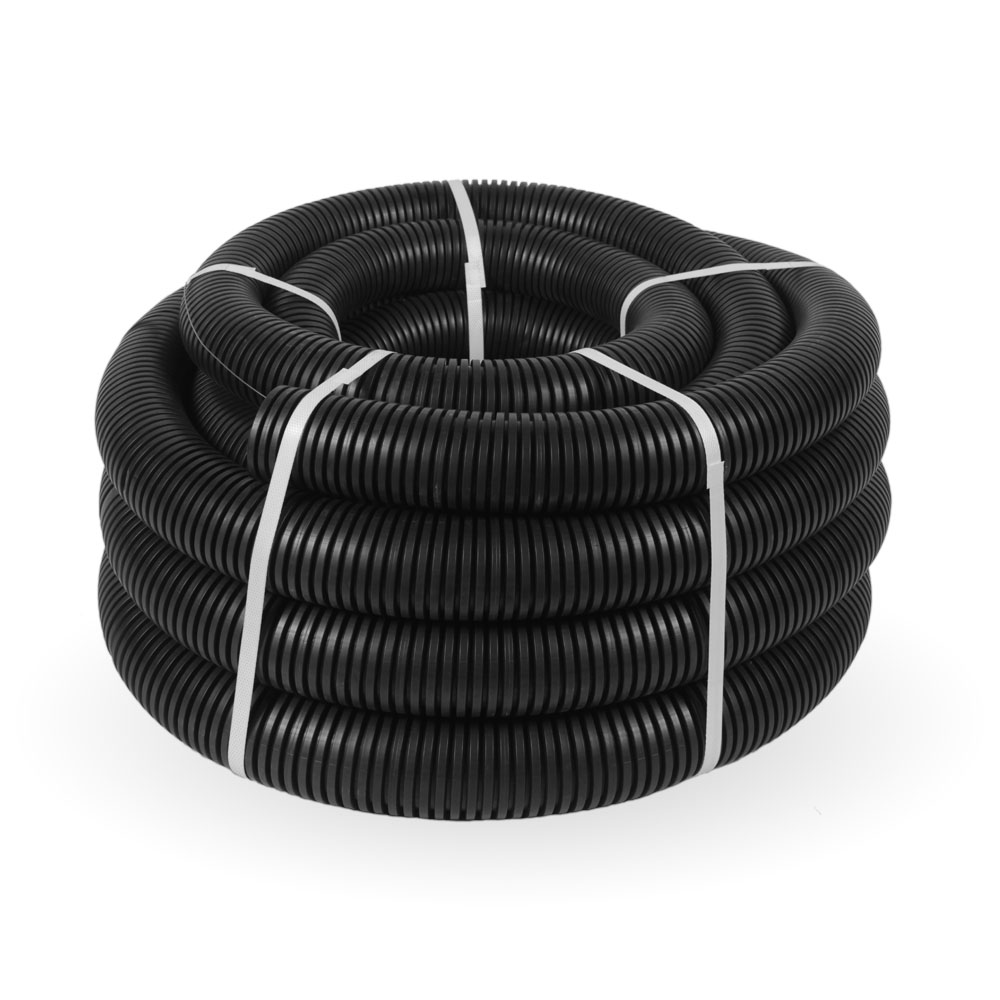 Гофрированная труба из полиэтилена низкого давления отлично подходит для защиты изолированных проводов и кабелей от механических п\овреждений и агрессивного воздействия окружающей среды при прокладке сложных систем и трасс. Материал изготовления является безгалогенным, что позволяет использовать изделие в общественных местах, с высоким скоплением людей, а стойкость к УФ, позволяет использовать трубу даже на открытом воздухе. Благодаря высокой коррозионной и химической стойкости, трубы из ПНД очень долговечны - срок эксплуатации более 50 лет.
