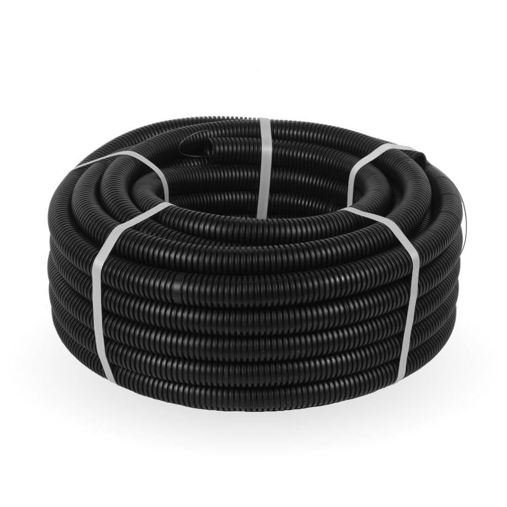 Гофрированная труба из полиэтилена низкого давления отлично подходит для защиты изолированных проводов и кабелей от механических повреждений и агрессивного воздействия окружающей среды при прокладке сложных систем и трасс. Материал изготовления является безгалогенным, что позволяет использовать изделие в общественных местах, с высоким скоплением людей, а стойкость к УФ, позволяет использовать трубу даже на открытом воздухе. Благодаря высокой коррозионной и химической стойкости, трубы из ПНД очень долговечны - срок эксплуатации более 50 лет.