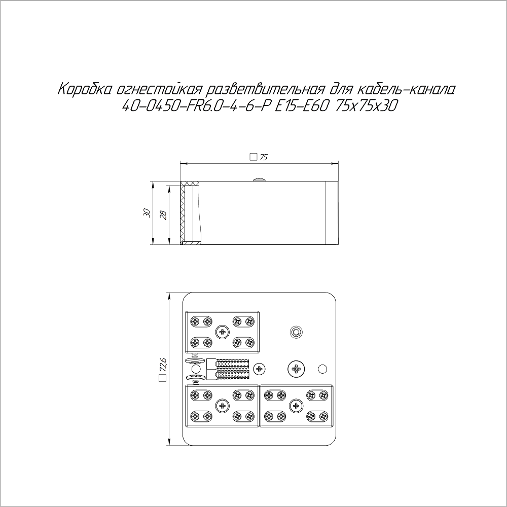 40-0450-9005-FR6.0-4-6-Р коробка огнестойкая разветвительная для кабель-канала 40-0450-FR6.0-4-6-Р Е15-Е60 RAL9005 75х75х30 (87 шт/кор) Промрукав; пластик; УХЛ4, Т4; 6 полюсов; IP42; монтаж -5...60 °C; эксплуатация -25...40 °C; 0,2384 кг/шт.