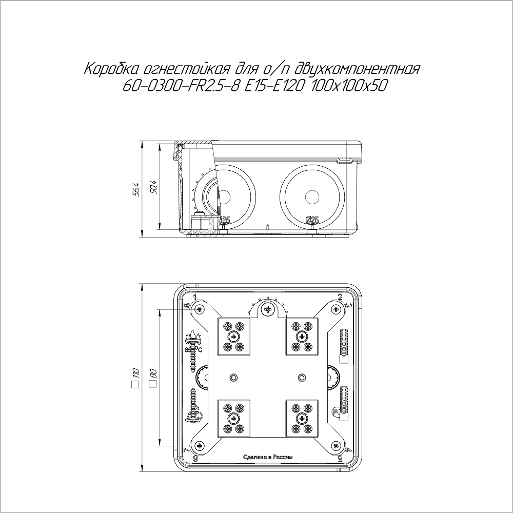 60-0300-7035-FR2.5-8 коробка огнестойкая для о/п двухкомпонентная 60-0300-FR2.5-8 Е15-Е120 RAL7035 100х100х50 (14 шт/кор) Промрукав; пластик; УХЛ1, Т1; 8 полюсов; IP66; монтаж -5...60 °C; эксплуатация -45...60 °C; 0,32967 кг/шт.