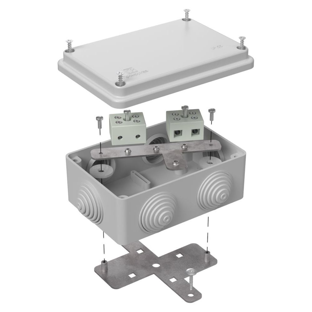 40-0340-7035-FR10.0-4 коробка огнестойкая для о/п 40-0340-FR10.0-4 Е15-Е120 RAL7035 120х80х50 (20 шт/кор) Промрукав; пластик; УХЛ4, Т4; 4 полюса; монтаж -5...60 °C; эксплуатация -25...40 °C; 0,2843 кг/шт.