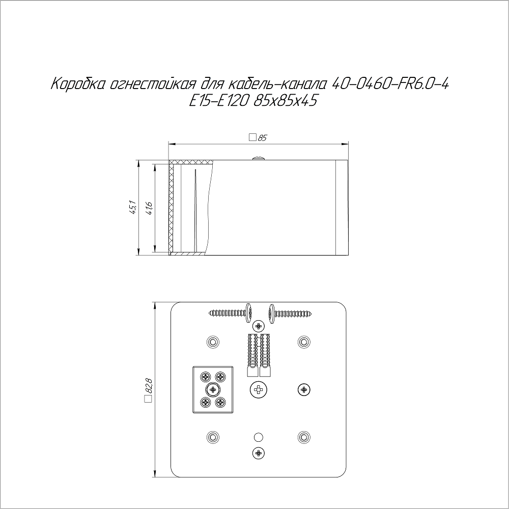 40-0460-9005-FR6.0-4 коробка огнестойкая для кабель-канала 40-0460-FR6.0-4 Е15-Е120 RAL9005 85х85х45 (44 шт/кор) Промрукав; пластик; УХЛ4, Т4; 4 полюса; IP42; монтаж -5...60 °C; эксплуатация -25...40 °C; 0,2309 кг/шт.