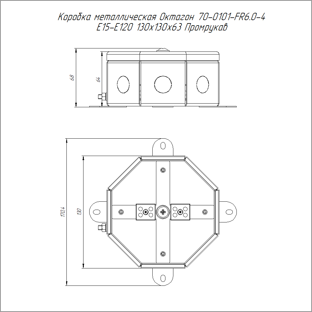 70-0101-2004-FR6.0-4 коробка металлическая огнестойкая Октагон 70-0101-FR6.0-4 Е15-Е120 RAL2004 130х130х63 (9 шт/кор) Промрукав; сталь; УХЛ2; 4 полюса; IP55; монтаж -15...50 °C; эксплуатация -60...50 °C; 0,58769 кг/шт.