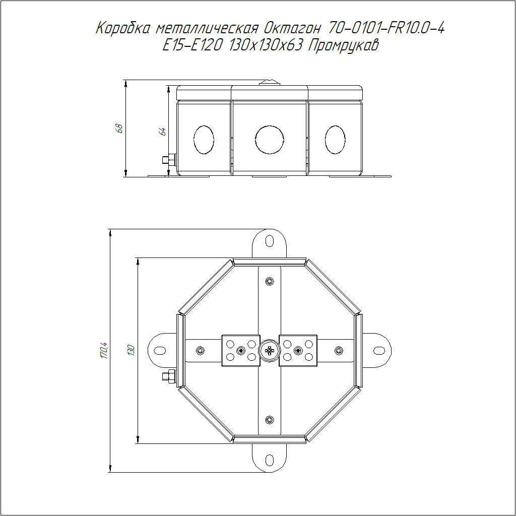 70-0101-2004-FR10.0-4 коробка металлическая огнестойкая Октагон 70-0101-FR10.0-4 Е15-Е120 RAL2004 130х130х63 (9 шт/кор) Промрукав; сталь; УХЛ2; 4 полюса; IP55; монтаж -15...50 °C; эксплуатация -60...50 °C; 0,60013 кг/шт.
