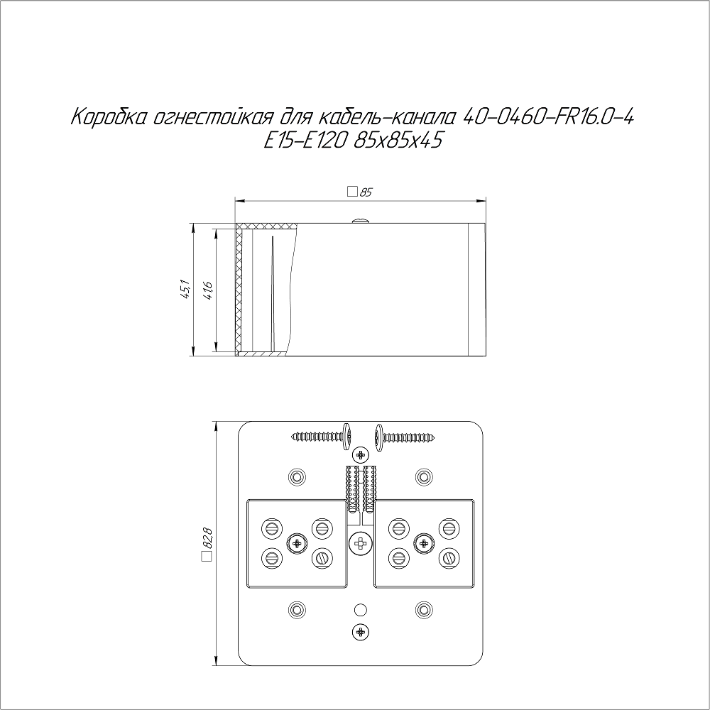 40-0460-9005-FR16.0-4 коробка огнестойкая для кабель-канала 40-0460-FR16.0-4 Е15-Е120 RAL9005 85х85х45 (44 шт/кор) Промрукав; пластик; УХЛ4, Т4; 4 полюса; IP42; монтаж -5...60 °C; эксплуатация -25...40 °C; 0,2925 кг/шт.