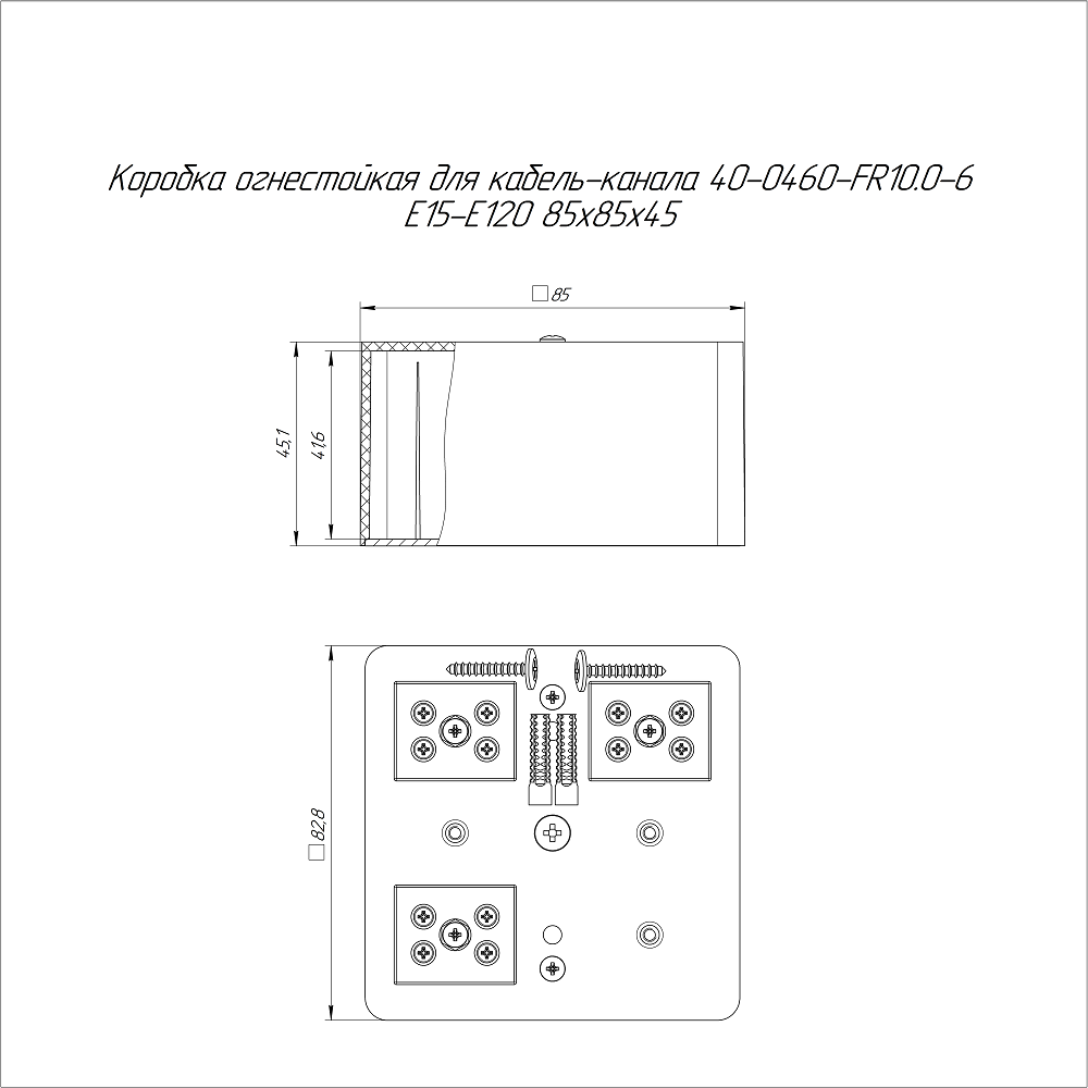 40-0460-9005-FR10.0-6 коробка огнестойкая для кабель-канала 40-0460-FR10.0-6 Е15-Е120 RAL9005 85х85х45 (44 шт/кор) Промрукав; пластик; УХЛ4, Т4; 6 полюсов; IP42; монтаж -5...60 °C; эксплуатация -25...40 °C; 0,2549 кг/шт.