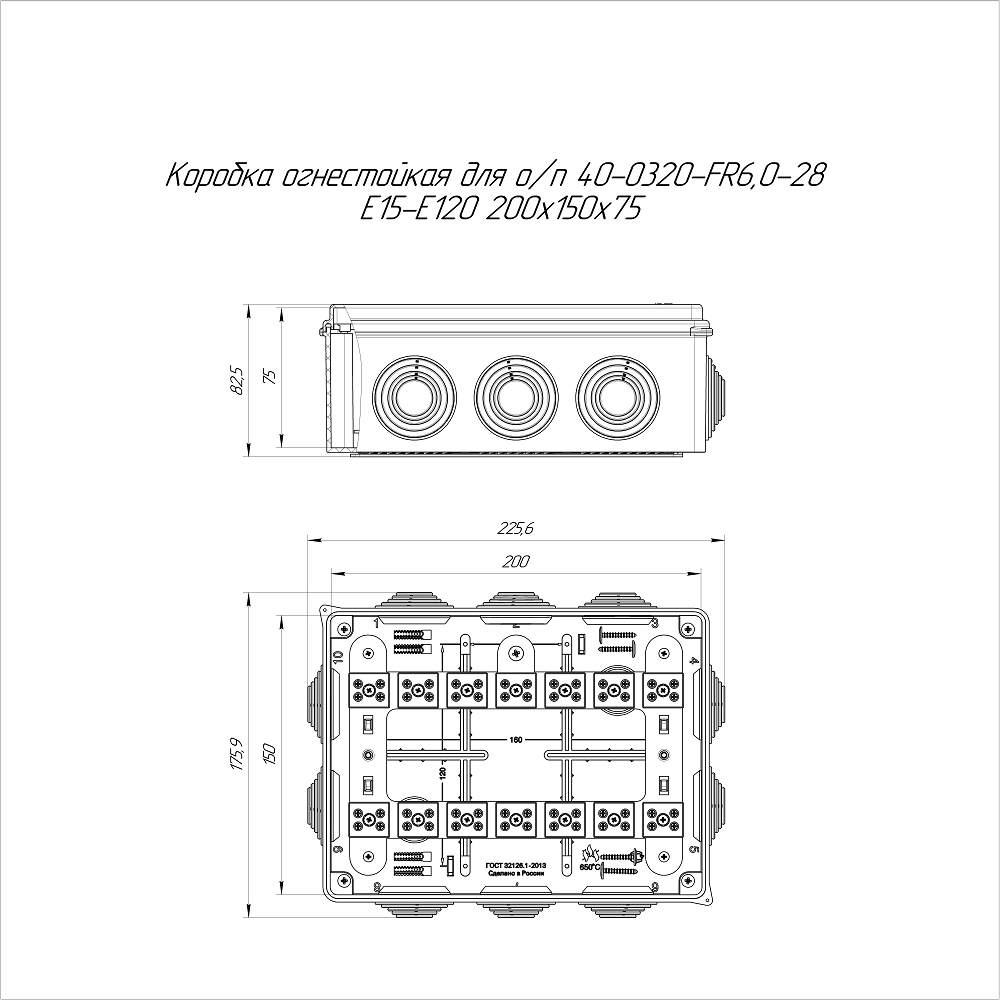 40-0320-7035-FR6.0-28 коробка огнестойкая для о/п 40-0320-FR6.0-28 Е15-Е120 RAL7035 200х150х75 (5 шт/кор) Промрукав; пластик; УХЛ4, Т4; 28 полюсов; IP55; монтаж -5...60 °C; эксплуатация -25...40 °C; 0,986 кг/шт.
