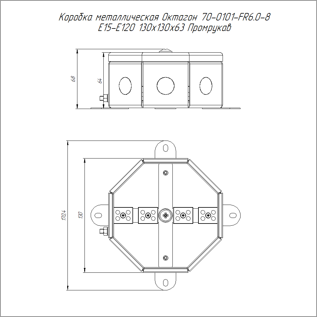 70-0101-2004-FR6.0-8 коробка металлическая огнестойкая Октагон 70-0101-FR6.0-8 Е15-Е120 RAL2004 130х130х63 (9 шт/кор) Промрукав; сталь; УХЛ2; 8 полюсов; IP55; монтаж -15...50 °C; эксплуатация -60...50 °C; 0,62302 кг/шт.