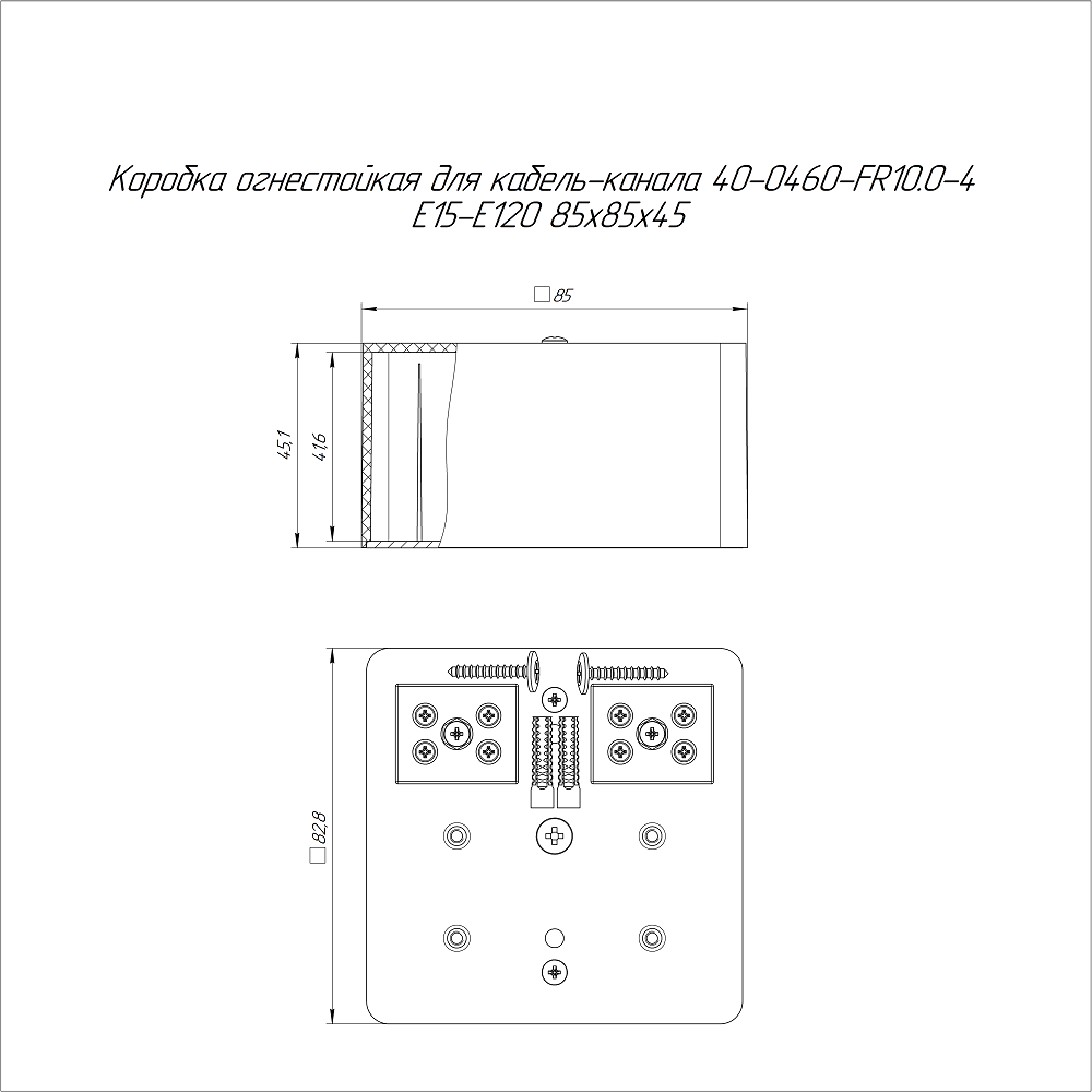 40-0460-9005-FR10.0-4 коробка огнестойкая для кабель-канала 40-0460-FR10.0-4 Е15-Е120 RAL9005 85х85х45 (44 шт/кор) Промрукав; пластик; УХЛ4, Т4; 4 полюса; IP42; монтаж -5...60 °C; эксплуатация -25...40 °C; 0,2309 кг/шт.