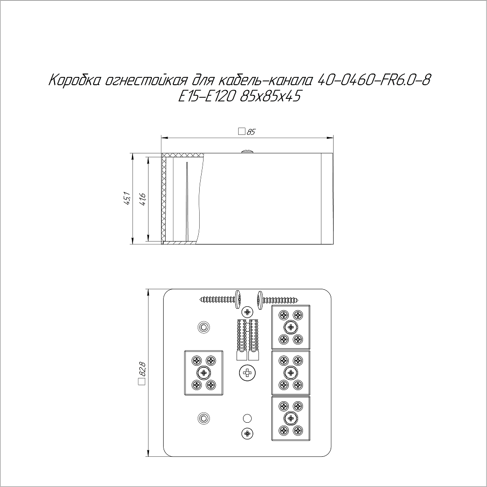 40-0460-9005-FR6.0-8 коробка огнестойкая для кабель-канала 40-0460-FR6.0-8 Е15-Е120 RAL9005 85х85х45 (44 шт/кор) Промрукав; пластик; УХЛ4, Т4; 8 полюсов; IP42; монтаж -5...60 °C; эксплуатация -25...40 °C; 0,2789 кг/шт.