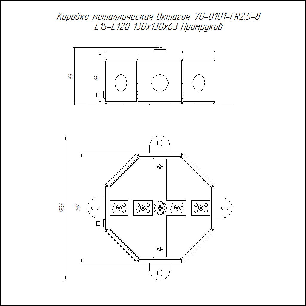 70-0101-2004-FR2.5-8 коробка металлическая огнестойкая Октагон 70-0101-FR2.5-8 Е15-Е120 RAL2004 130х130х63 (9 шт/кор) Промрукав; сталь; УХЛ2; 8 полюсов; IP55; монтаж -15...50 °C; эксплуатация -60...50 °C; 0,5982 кг/шт.