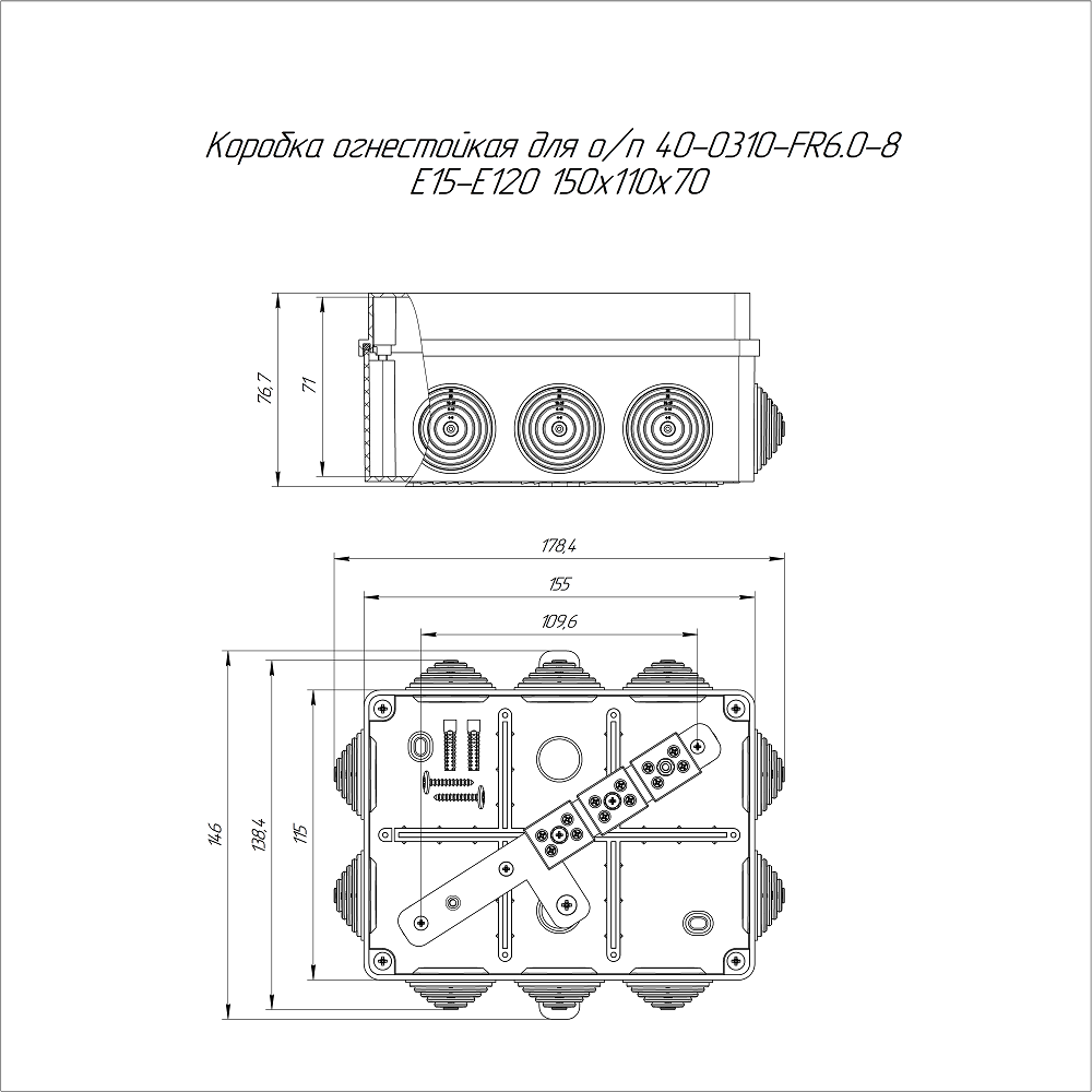 40-0310-7035-FR6.0-8 коробка огнестойкая для о/п 40-0310-FR6.0-8 Е15-Е120 RAL7035 150х110х70 (6 шт/кор) Промрукав; пластик; УХЛ4, Т4; 8 полюсов; IP55; монтаж -5...60 °C; эксплуатация -25...40 °C; 0,4731 кг/шт.