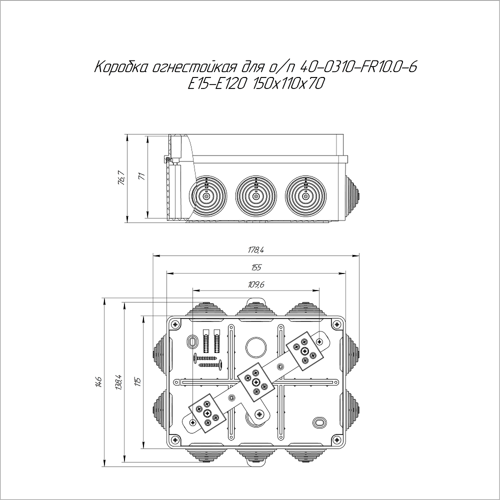 40-0310-9005-FR10.0-6 коробка огнестойкая для о/п 40-0310-FR10.0-6 Е15-Е120 RAL9005 150х110х70 (6 шт/кор) Промрукав; пластик; УХЛ4, Т4; 6 полюсов; IP55; монтаж -5...60 °C; эксплуатация -25...40 °C; 0,4491 кг/шт.