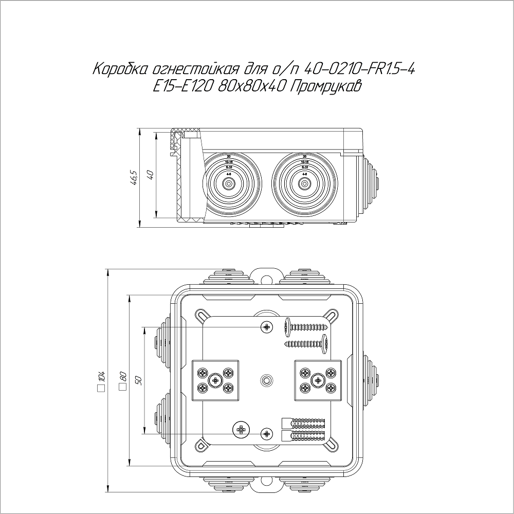 40-0210-9005-FR1.5-4 коробка огнестойкая для о/п 40-0210-FR1.5-4 Е15-Е120 RAL9005 80х80х40 (44 шт/уп) Промрукав; пластик; УХЛ4, Т4; 4 полюса; IP55; монтаж -5...60 °C; эксплуатация -25...40 °C; 0,2986 кг/шт.