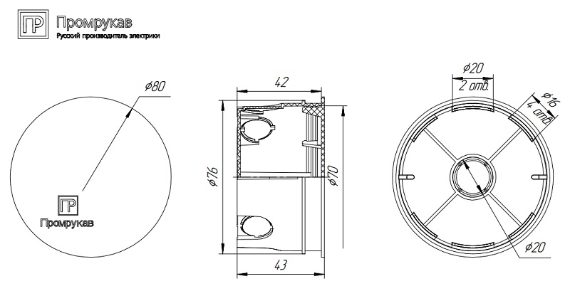80-0850 коробка распределительная для с/п 76x42 Промрукав; безгалогенная; IP20; 7 вводов; 76x42; t-раб.: -25...+40°С; 0,03005кг.