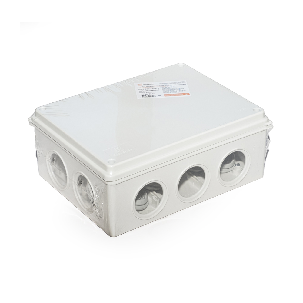 40-0320 коробка распределительная 40-0320 для о/п безгалогенная (HF) 200х150х75 (16шт/кор) Промрукав; кол-во вводов 10; УХЛ4; RAL 7035; -25..40°C; IР55; 0,40412 кг.