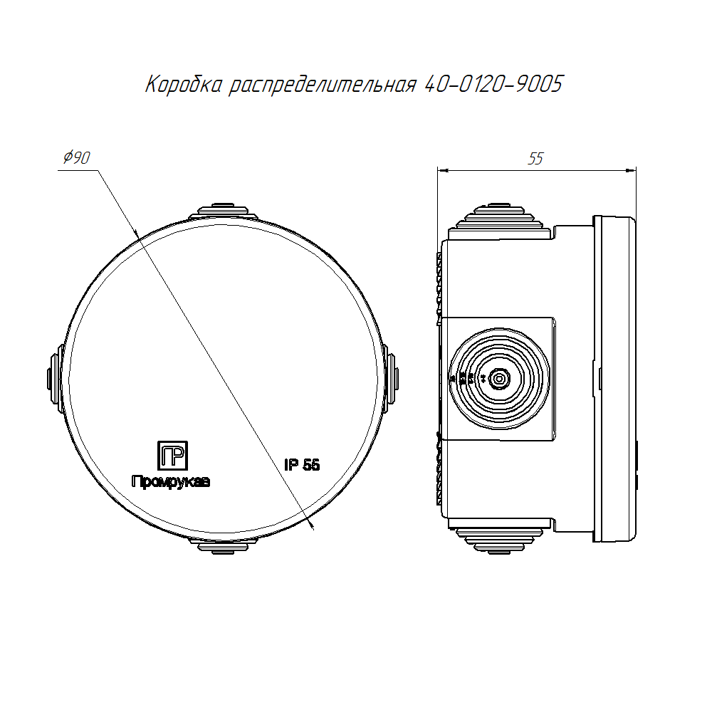 40-0120-9005 коробка распределительная 40-0120-9005 для о/п безгалогенная (HF) черная 80х50 (102шт/кор) Промрукав; кол-во вводов 4; УХЛ4; RAL 9005; -25..40°C; IР55; 0,06425 кг.